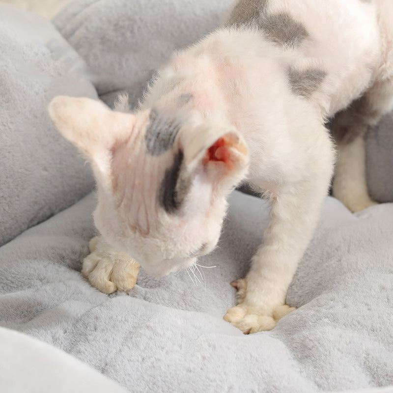 Velvet Round Flower Cat Bed