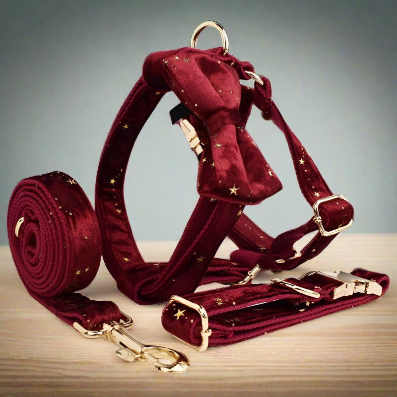 Elevate your furry friend's status as the classiest pup on the block with the Velvet Pet Collar and Leash Accessories Set! Whether it's a casual walk or a night out on the town, your pet will exude style and trendiness with these velvety-smooth accoutrements. The set ensures your pet is always fashion-forward, turning every outing into a showcase of elegance. The luxurious Velvet Pet Collar and Leash velvet material not only adds a touch of sophistication but also provides a comfortable and snug fit for your pet. You can confidently "collar" the look with this stylish ensemble, ensuring your pet stands out without actually being collared. Make a statement in both fashion and functionality with this Velvet Pet Collar and Leash Accessories Set, turning every moment with your pet into a stylish affair.